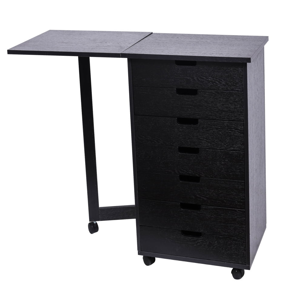 Wood Filing Cabinet 7 Drawer Gate Leg Roll Cart With Desk Black Color Rt Black File Storage Cabinets Walmart Com